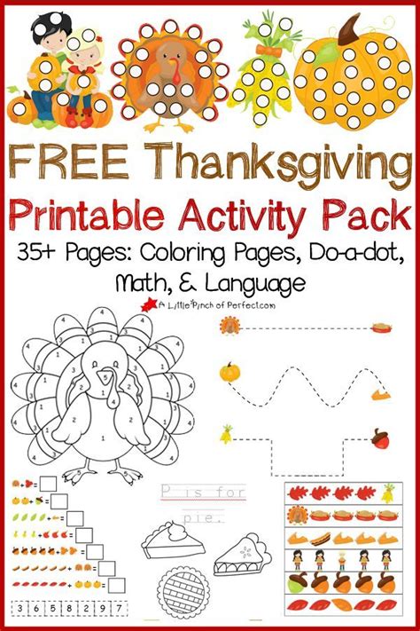 Free Thanksgiving Printable Activity Pack Including Coloring Pages, Do a Dot, Math and Language